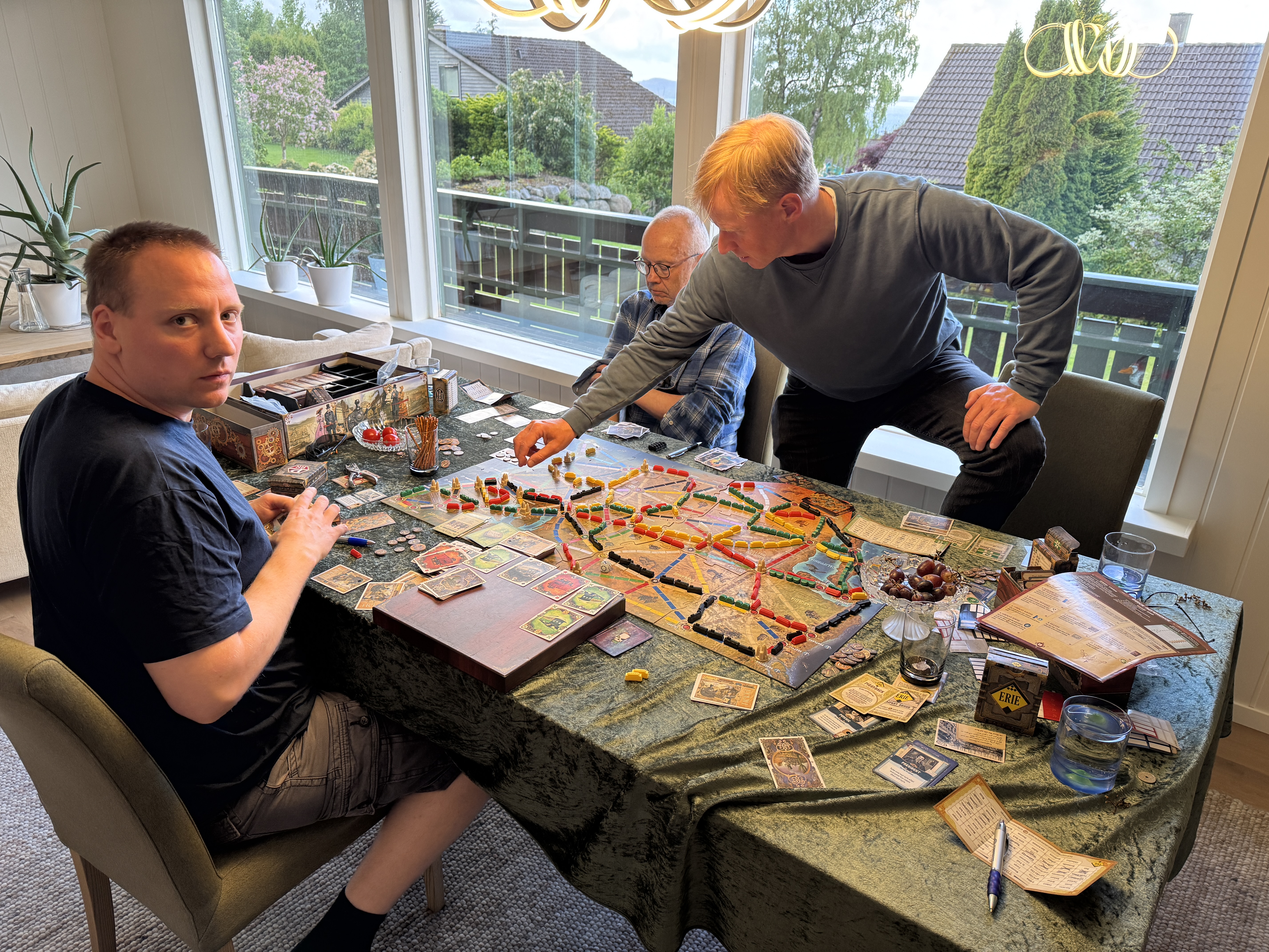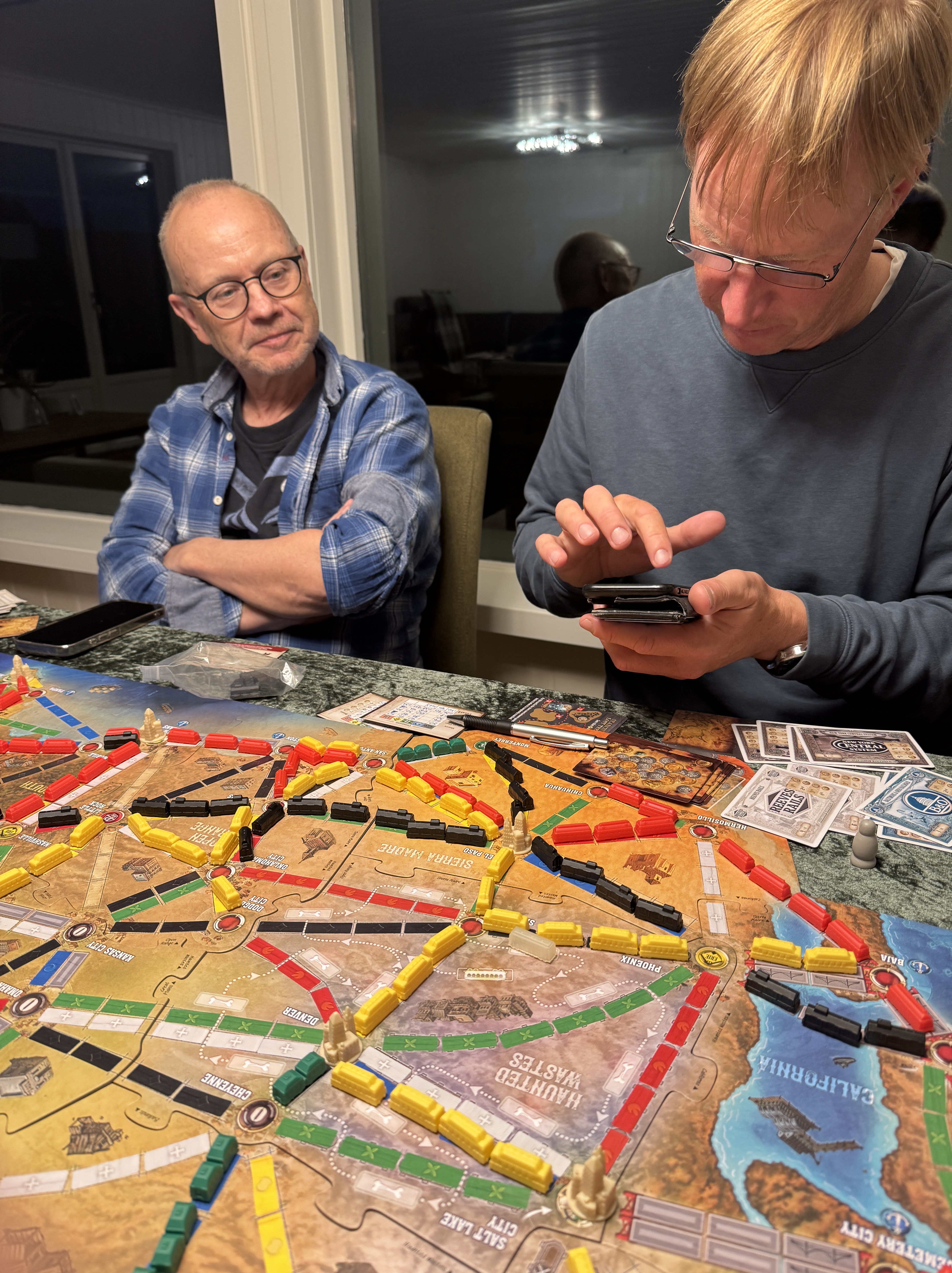 Så ville Terje og Torgeir spille noe skikkelig, og jeg tok vel litt overkill og fant frem Great Western Trail Argentina. Burde vel kjørt grunnspillet først, men med litt god veiledning og introdusering av noen regler etterhvert så fikk vi kveget til Buenos Aires. Terje og Torgeir ble litt vel svimle, men jeg gir spillet 10/10, men fordel å ha spilt grunnspillet først.