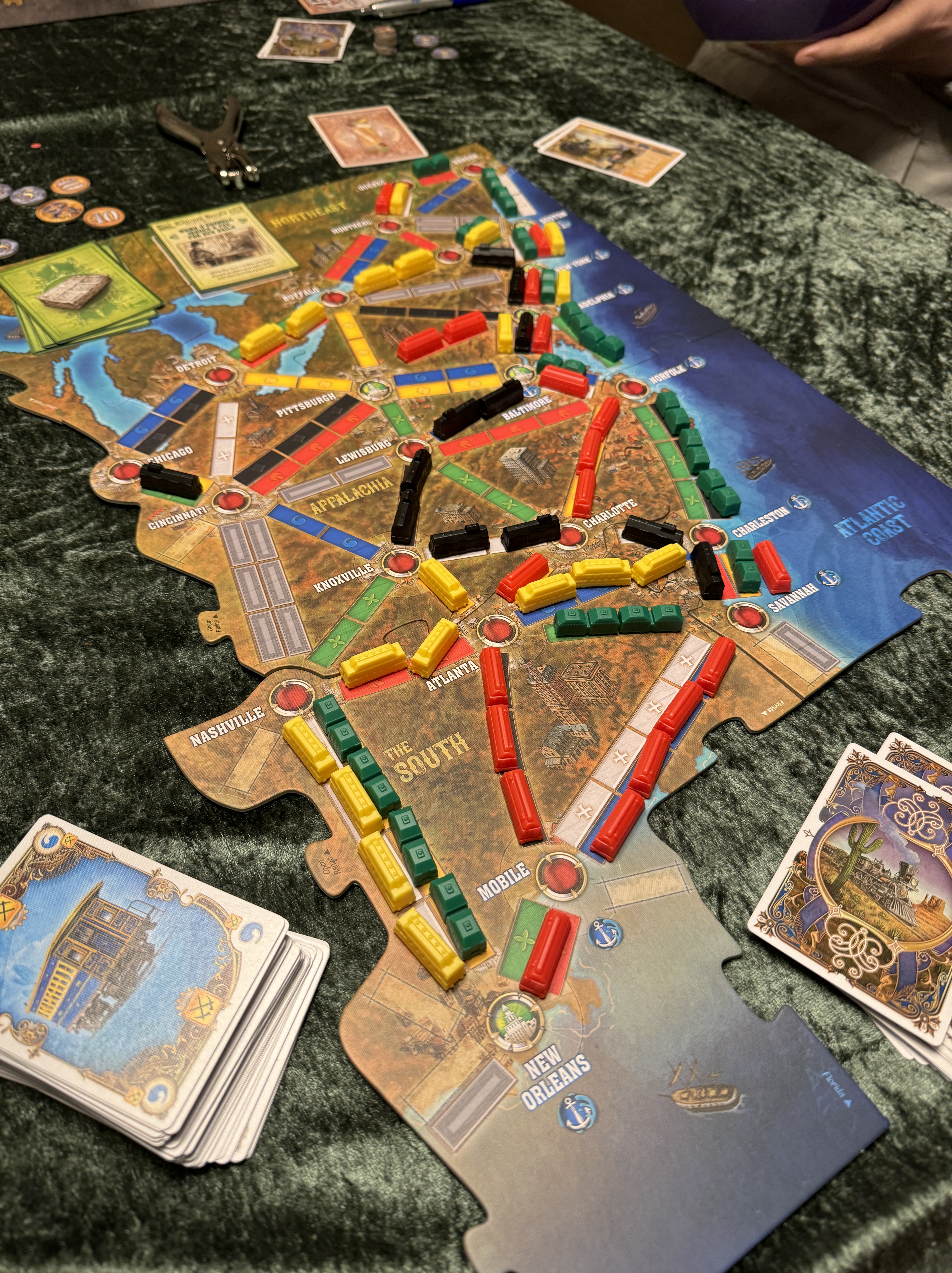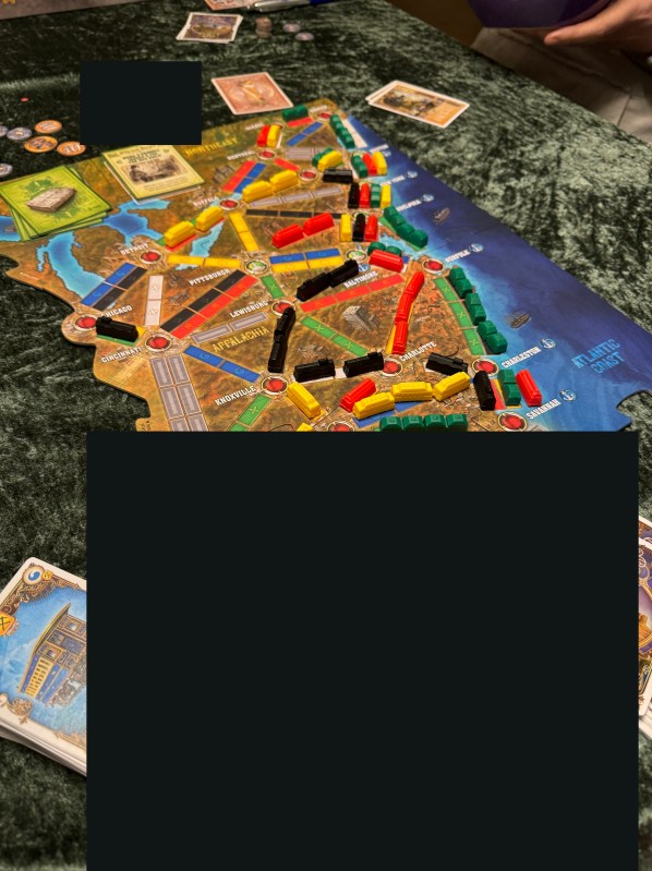 Å få fire voksne mennesker med hver sine andre obligasjoner, er ikke det letteste i verden. Men, vi har fått det til. Vi startet i november i det herrens år 2023, halvannet år siden, med andre ord. Og begynnelsen er et helt rent Ticket to Ride, bare super super lite. Vi startet på østkysten av USA og skal erobre oss inn i landet med jernbanene våre.