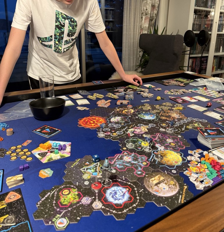 Endelig mandag! Det var sol ute på kveldstid – men med godt lag er det kjekt å sitte inne og spille også. I kveld var vi 3 stykk, Josef, Graham og Takras, og Xia: Legends of a Drift System kom straks på menyen, et spill godt egnet for 3 spillere.