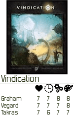 Med smaksløkene satt i gang, var det på tide å dekke på med en hovedrett. Vindication ble spillet, etter Vegard sa han gjerne kunne tenke seg worker placement på et kart.