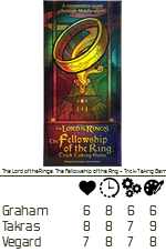 Vi hadde ennå tid til en avslutter før kvelden og da fant vi frem spillet med den lengste tittelen: The Lord of the Rings: The Fellowship of the Ring – Trick-Taking Game. Som i spillet The Crew, skal vi jobbe sammen med stikk-tagning for å oppfylle krav vi har på våre karakterer. Eksempelvis er Bill the Pony – en karakter – skal kun ha ett stikk. Såkalt One-Trick Pony, mens Glorfindel trengte å vinne alle de røde kortene.