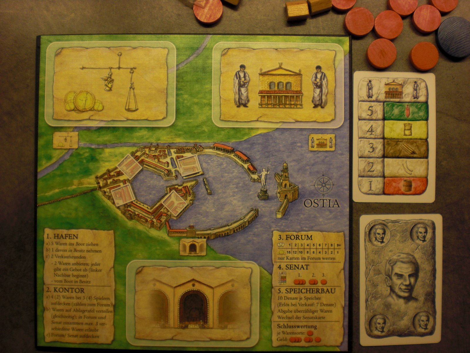 Ostia er et auksjonsspill for 3 til 5 spillere og handler om den havnebyen Ostia