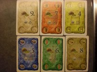 Når alle har tilbudt 2 sett varekort, må spillerne fordele dem over for