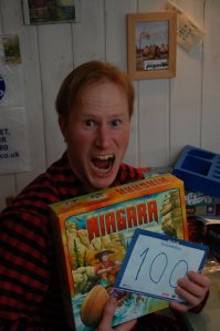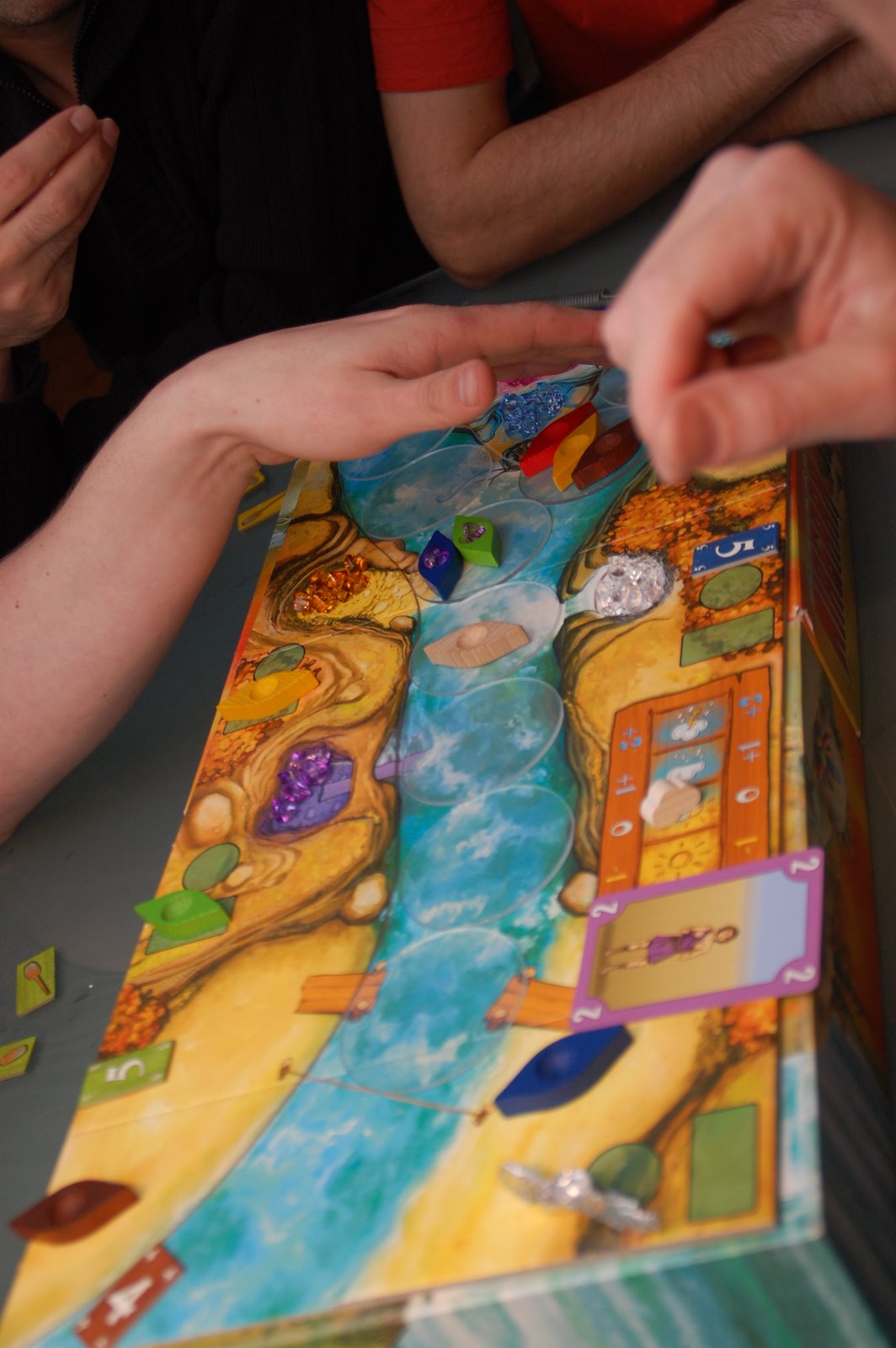 et det hele med å stjele, og det ble det mye av i spillet. Peter var sjefsstjeler, men kom aldri i land med diamantene sine. Ebi kjørte opp tempoet i Elva til +2, og Sven hauset opp stemningen minst 2 hakk. Det ble mye desperat roing, men på mirakuløst vis datt ingen i fossen. Sveinmain klarte til slutt å få 5 diamanter i 5 ulike valører og kunne dermed gå seirende ut av feiden.