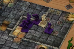 t mulig over til det andre bordet. Hva som ventet der visste ingen, men alt annet enn D og D. Dungeonmaster Vegard hadde forberedt seg meget godt, og D og D fløt meget bra, og det var mye kappestrid med vanskelige monstre og andre utfordringer som Dungonmaster utfordret de andre med. Mange vakre figurer og flotte brett i spillet. The master leste opp scenarioet som passet med musikken. Meget bra ressigert.