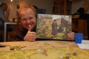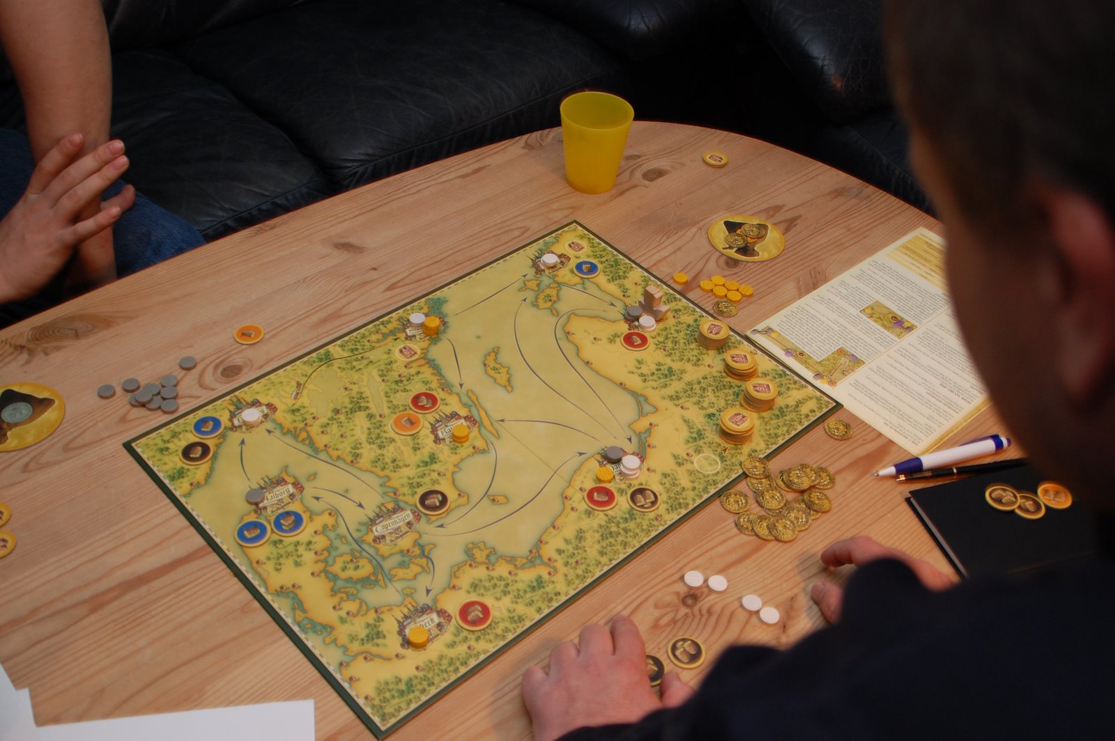 dre steder, enten i form av poeng eller nye torgboder. Etter at Hollender hadde forklart reglene så både Black Ant og Vegard uvitende på brettet, men etter noen få runder hadde de fortsått spillsystemet som er lett og elegant. Hvis din nabo alltid parkerer skipet i utkantstrøk, kan det bli dyrt å gjøre noe fornuftig. Dette opplevde Vegard flere ganger, for Black Ant stoppet ofte i Regal. I tillegg møtte Vegard flere ganger et tomt brett, slik at måtte bruke penger til å fylle byene med nye tønner. Hollender og Black Ant klarte å samle flere tønner. Sistnevnte klarte dessuten å bygge torgboder i nesten samtlige byer som hjalp ham til en første plass.
