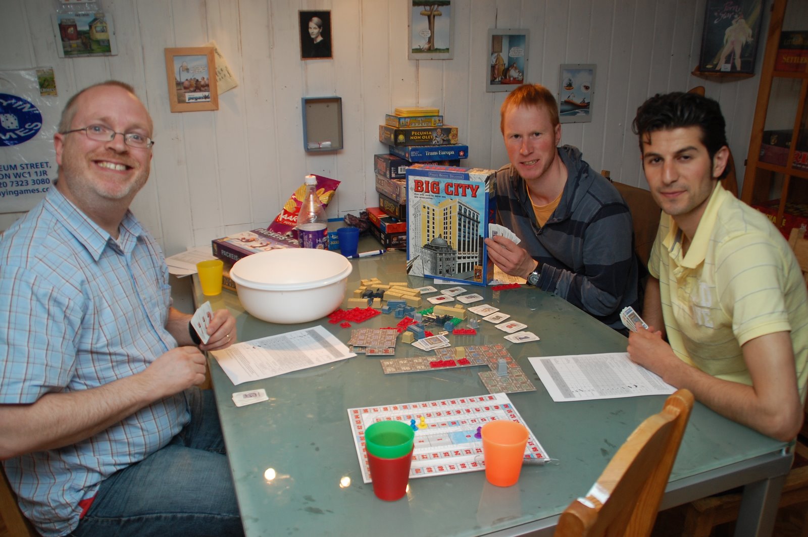 ng på kvelden tok vi frem et meget vakkert spill, nemlig BIG CITY! Spillet har vel de vakreste brikkene i allefall med tanken på at spillet er fra 90 tallet. Sveinmain bygde mye uten å få poeng i begynnelsen. Både Rådhuset og T-banen ble bygget, mens Peter sanket viktige poeng og fikk seg en brukbar luke. Big City har blitt kritisert for at Lederen er vanskelig å ta igjen, men Ebi bygde plutselig et Shoppingsenter, og innkasserte 30 kjappe poeng og var en periode foran Peter. Sveinmain var håpløst langt bak, og kunne bare prøve å ødelegge mest mulig for Peter med et par fabri