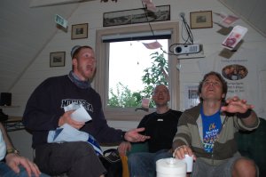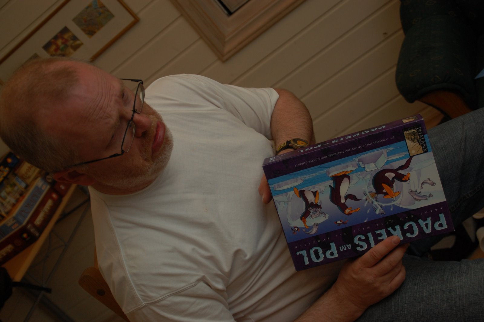 Som en verdig avslutning på kvelden tok vi en 10 minutters omgang med Packeis am pol, rigging av spillet inkludert. Peter som var ubeseiret i dette spillet spilte høyt denne gangen også, og satset på at Pift skulle gå inn og