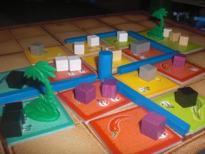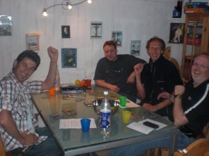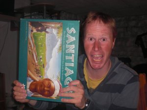 Santiago. Dette er et kjapt og kjekt bestikkelses-/auksjonsspill. Sveinmain måtte tidlig bruke sin vanningskanal, mens de andre ventet lengre med den. Vannmannen – som en kunne bestikke var en hard nøtt, og vannkanalene gikk stort sett som vannmannen ville uansett hvor store beløp ble lagt på bordet. Det lønnet seg med å by med en viss sluhet, slik at en ikke betalte for mye for at pantasjen skulle tørke ut. Noen meget store pantasjer bredte seg på brettet, og da dette genererer seierspoeng på slutten gjaldt det å være med der poengene deles ut. Sveinmain hadde mange lodd i potten, mens Hollender og Vegard hadde bygd ut en sukkerplantasje som kun de to disponerte. Heldigvis for Sveinmain, med litt hjelp fra Ebi og virituell hjelp fra Morten, så klarte de å styre vannet vekk fra denne plantasjen og det sikret dermed Sveinmain seieren.
