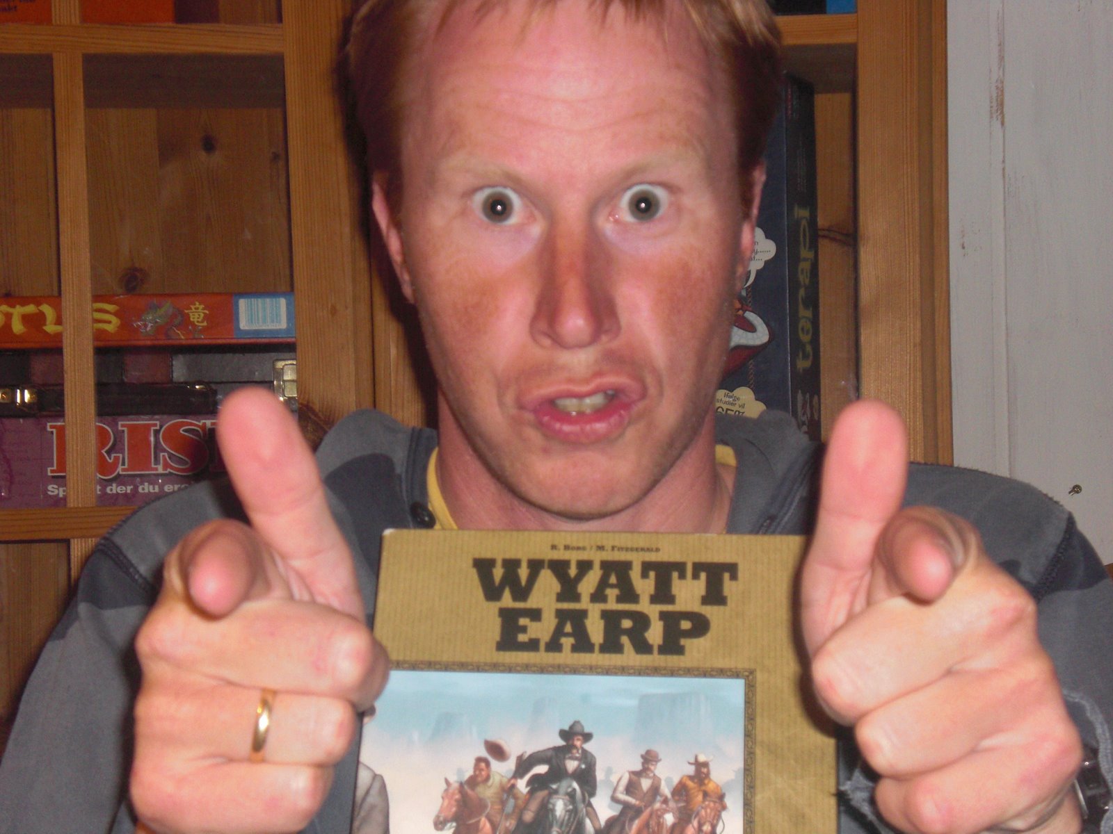 Wyatt Earp. Det ble 3 harde runder på jakt etter gansterne. Første ganske jevn, før Sveinmain tok noen store potter i andre runde og fikk avsluttet raskt. I det som ble siste runde så fikk Sveinmain alle 3 Unterschlupf eller «teller ikke lengre» kortene mot sine gangster rekker såpass at han slet med i det hele tatt å få p