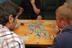 g da brettet innbyr til det, men sabotasje ble det mindre av. Ingen tok sjansen for selv å bli sabotert. Pift fikk in Murmansk Vladivostok ruta på 27 poeng og han tok også å innkasserte noen lange gode ruter. Sveinmain og Vegard satset på korte greie ruter, og det hele endte med at Sveinmain misslyktes i å bygge siste tunnell streking før spillet sluttet og det med hele 3 forsøk til stor glede for alle andre. Etter en kjapt slutt-telling stakk Pift av med seieren og ble Jernbanebaron av 1. klasse til neste slag om Norden vil stå en gang i løpet av høsten/vinteren.