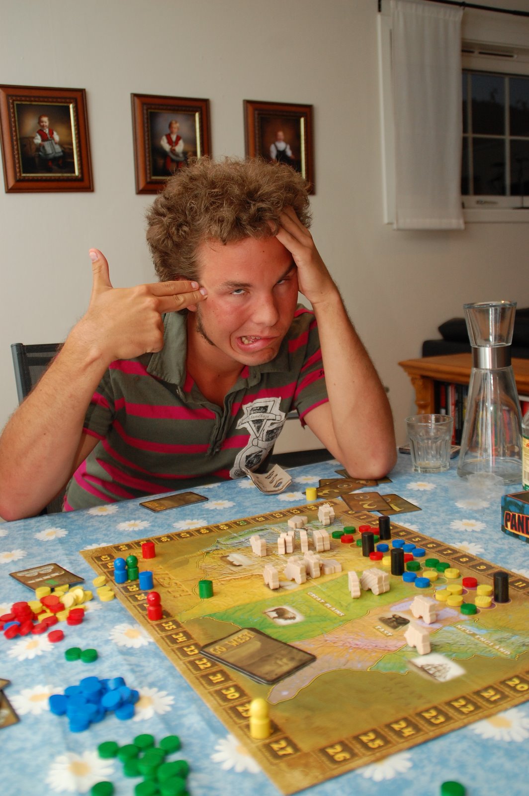 Sveinmain hadde en ungefri og bollefrikveld, og den måtte dermed benyttes godt. Hva passet bedre enn å invitere noen unge fremadstormende menn hjem for en kveld med is, pizza, potetgull og brus, i tillegg til brettspill selvfølgelig. Sveinmain hadde forberedt 2 nye «perler» denne kvelden som bare måtte prøves ut. Begge spillene var max 4 player, og da 4 dukket opp var det bare å sette i gang. Først ute var Pandemic. Et samarbeidsspill. Som ofte før i PG sammenheng