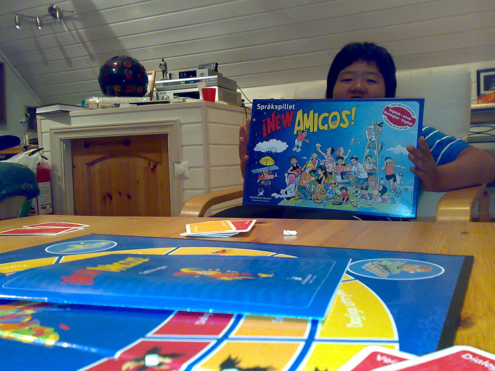 De unge er fulle av kunnskapstørst og dermed ble endelig plasten sprettet på New Amigos – English. Even ville gå rett på ekspert, men ble prettet ned på middels. der endte også Philip, mens Black ant gikk på ekspert. Noen ganger ble det stemt over forslag som Philip gikk tapende ut av – til de to andres store jubel. Mye moro var det også med forlagene på kortene om hvordan norsk-engelsken skulle uttales. Men spillet fløt godt, og lærdommen gled inn. Til slutt bikket klokken halv tolv, og spillet ble