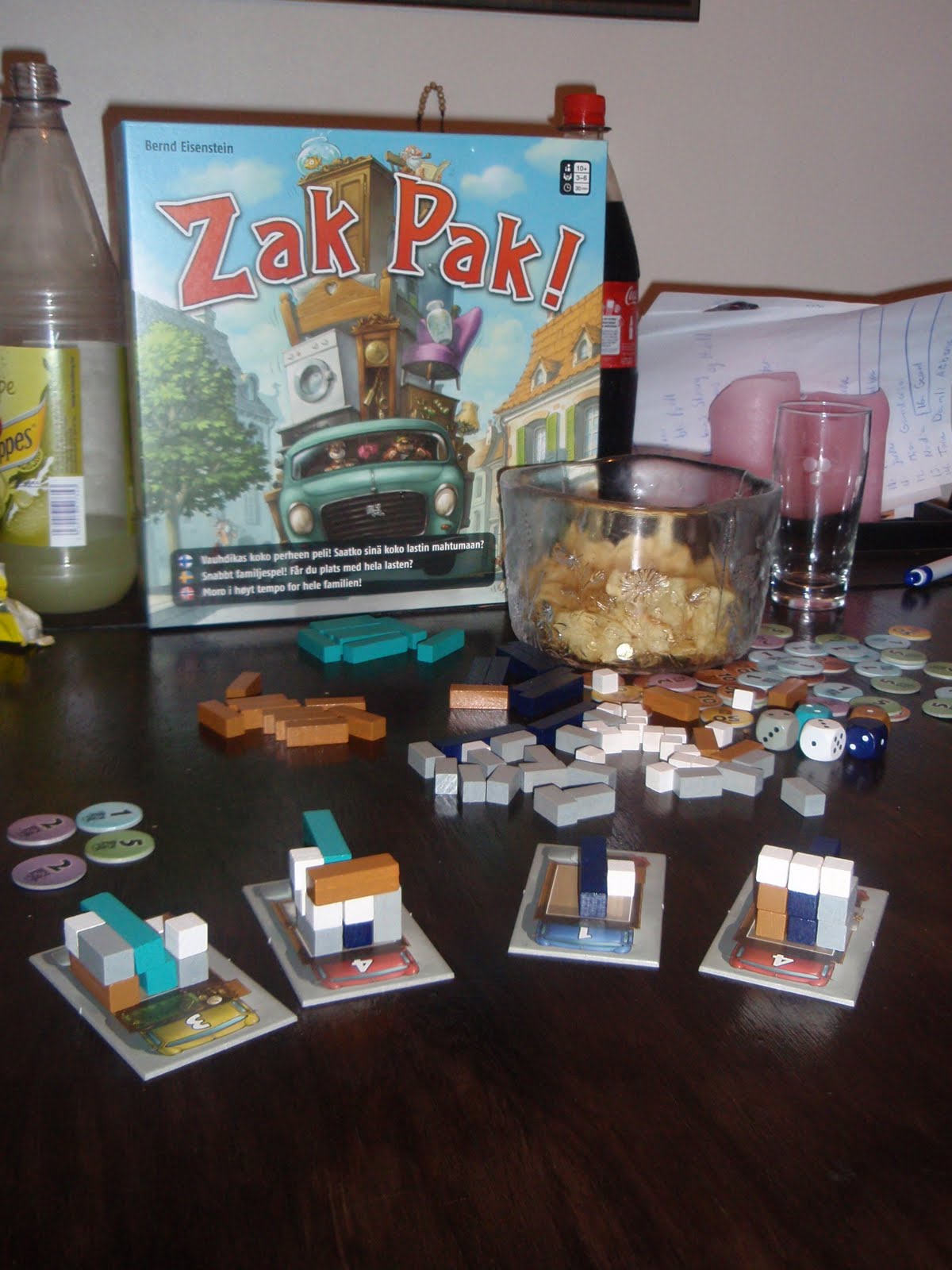 Etter litt bordkonkurranser og lakrissnorspisekonkurranse så var det duket for en runde Zack Pack som PG hadde fått for testing. 5 minutter regellesing av far Sveinmain, så var vi i gang. Her gjaldt det å først kaste terning for å få varer, for så å finne en aktuell lastebil å få vare