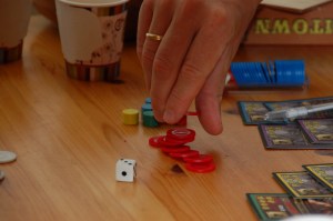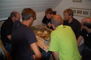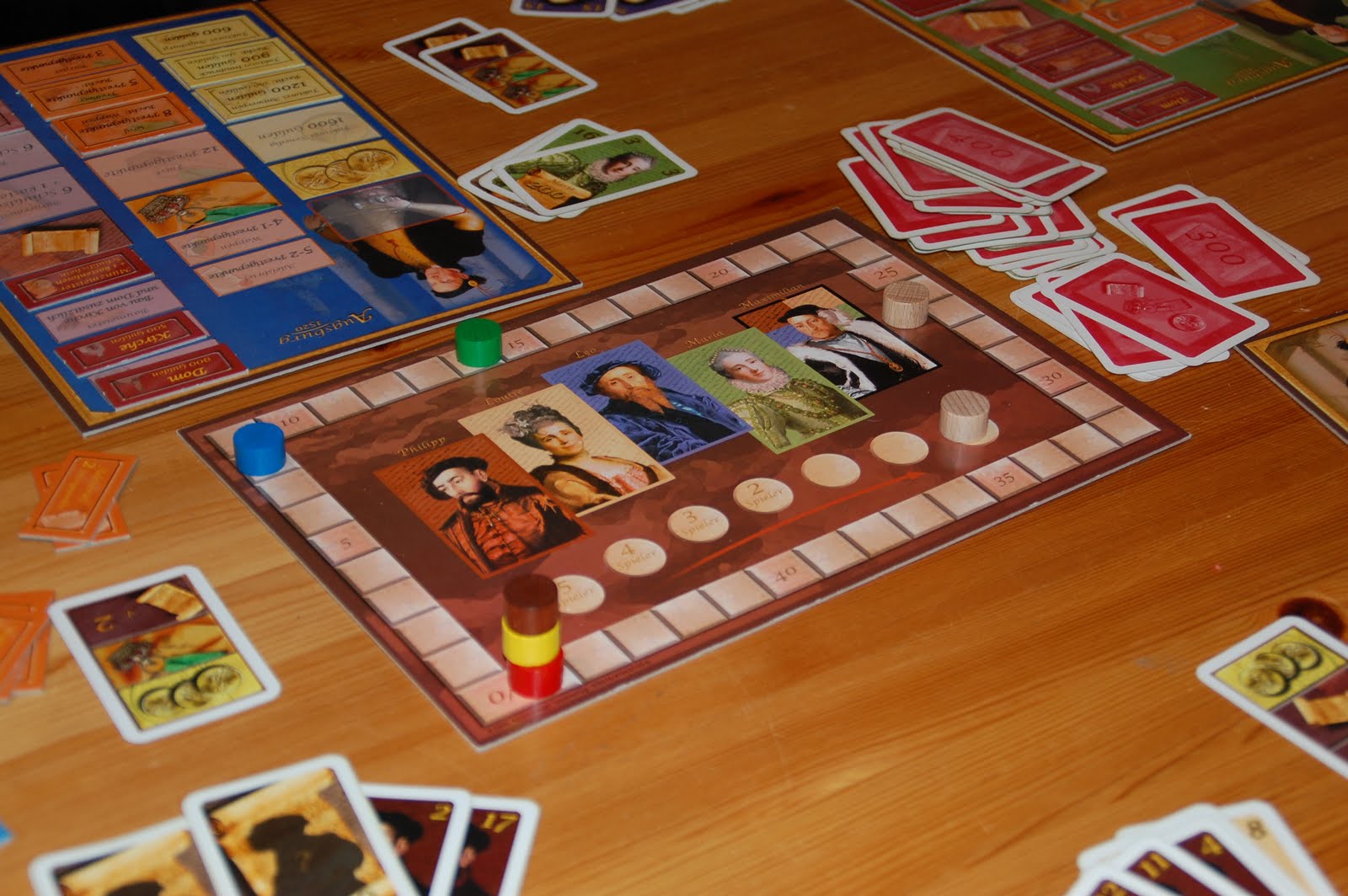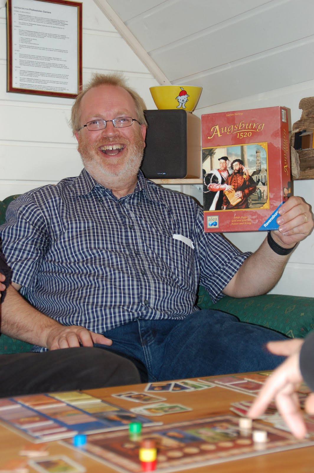 Augsburg, Sveinmains absolutte favorittspill lå klar til bruk. Peter, Pift, Morten og Aart var klare for noen timer auksjonsspill. Her gjelder det å låne penger til de Geistlige slik at de igjen gir deg fordeler som makt og innflytelse. Det er også litt stjeling i spillet, noe som skaper god steming! Det ble mange har de auksjoner, mens Pift slet med å få til noe som helst til å begynne med