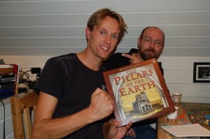 å lang tid, at spillet ikke ble helt spilt ferdig. Men Saulen der Erde har såpass kvalitet, at esken ikke forsvinner i hyllen. Da Black Ant hadde satt spillet på bordet, ble Trond som førstereisgutt overveldet av innholdet (”her var det mye!”). Mark (som reiser fra Nederland til PG hver sommer) hadde spilt det før, men trengte en oppfriskning. Vegard, Hollender og Black Ant kjente spillet inn og ut.