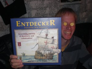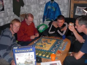 Møysommelig ble Entdecker satt opp, og Aart, Sven og Sveinmain ble nøye informert om reglene. Ingen store bomber underveis i regelforklaringene heller, så en god gjennomført regeljobb av Peter. Men gikk spillinga like bra?
