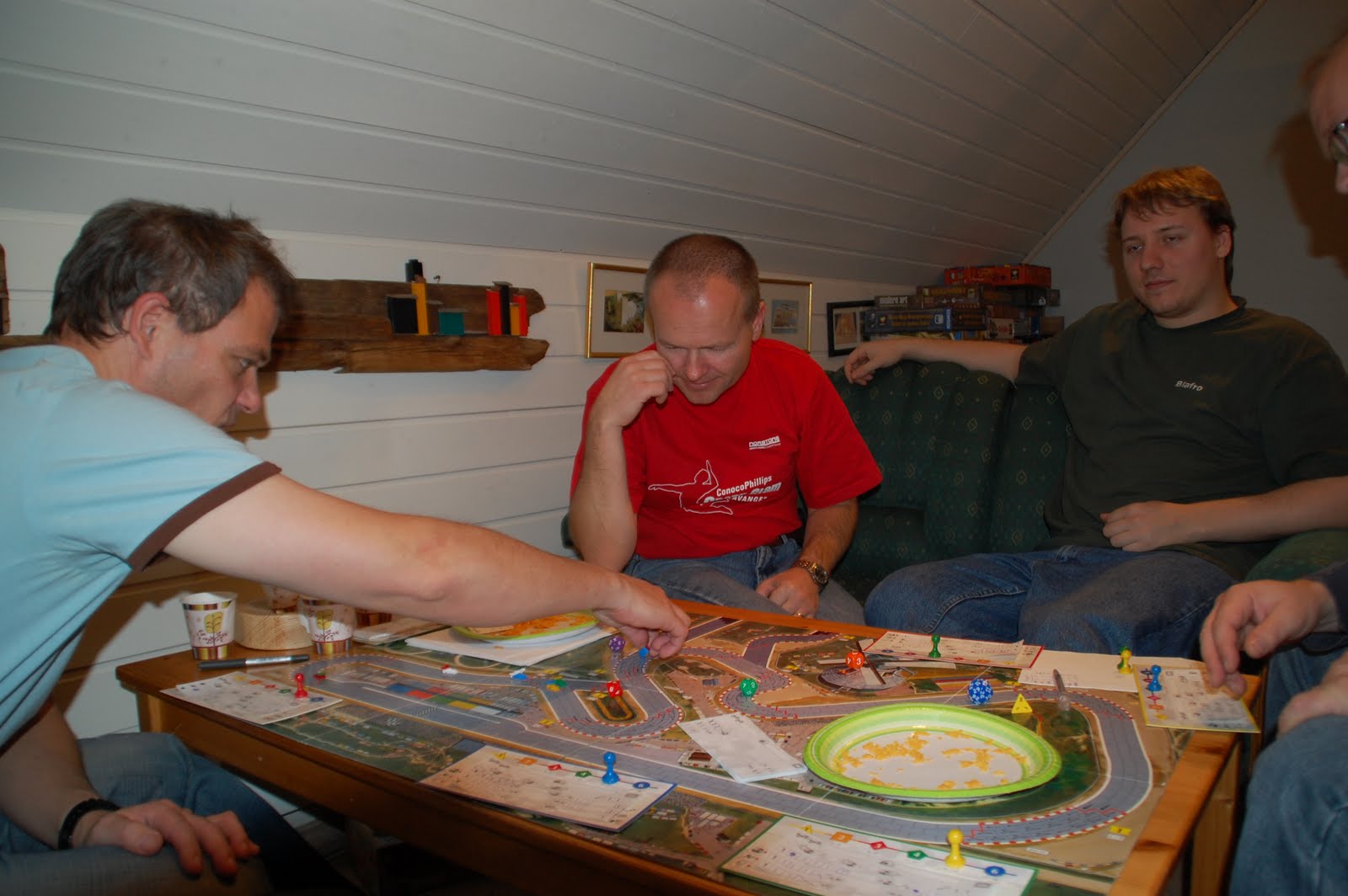 terningen, eller 6. gir og få 21 eller 22. De fleste gikk for den 1. løsningen, men langt fra alle lyktes å treffe denne svingen, noe som skapte meget god stemning rundt bordet. 2 svinger før mål var det bare Vegard som var hetet av lasset: SE BILDE–>