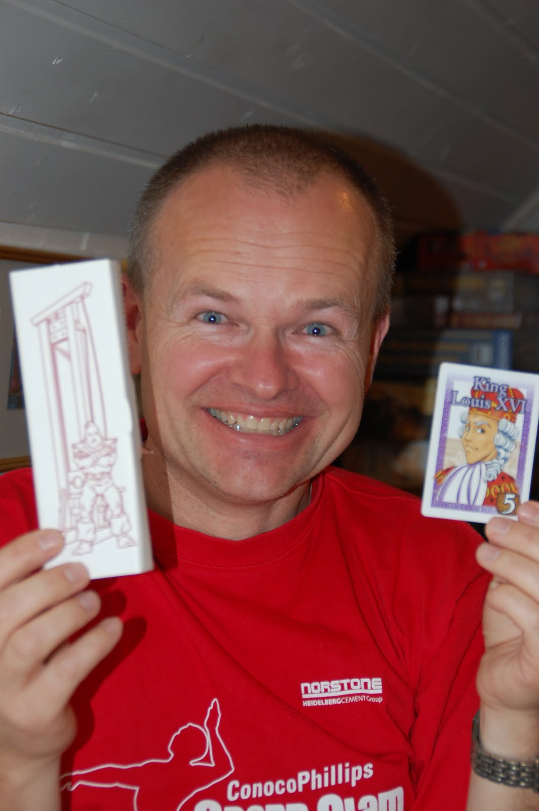 2 runder senere hadde det som vanlig snudd for Sveinmain mens Trond kunne innkassere en elegant seier, knepent foran Peter. Trond kunne mimre første gang han spilte 6 nimmt, da Sveinmain halveis ut i spillet hadde sagt at kortene med horn gir poeng, ja minuspoeng altså:-)