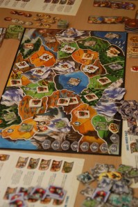 forberedt reglene og forklarte dem på flytende svensk til Black Ant og Hollender. Mens Peter forklarte spillet, sorterte han varene vi trengte og preparerte brettet. Hollender og Black Ant var rask enige; her var det mye å holde oversikt over. Med spillet følger en sorteringsboks som skiller alle de små brikkene fra hverandre, men Peter trengte nesten pinsett til å ta noe ut. Selv om Hollender og Black A