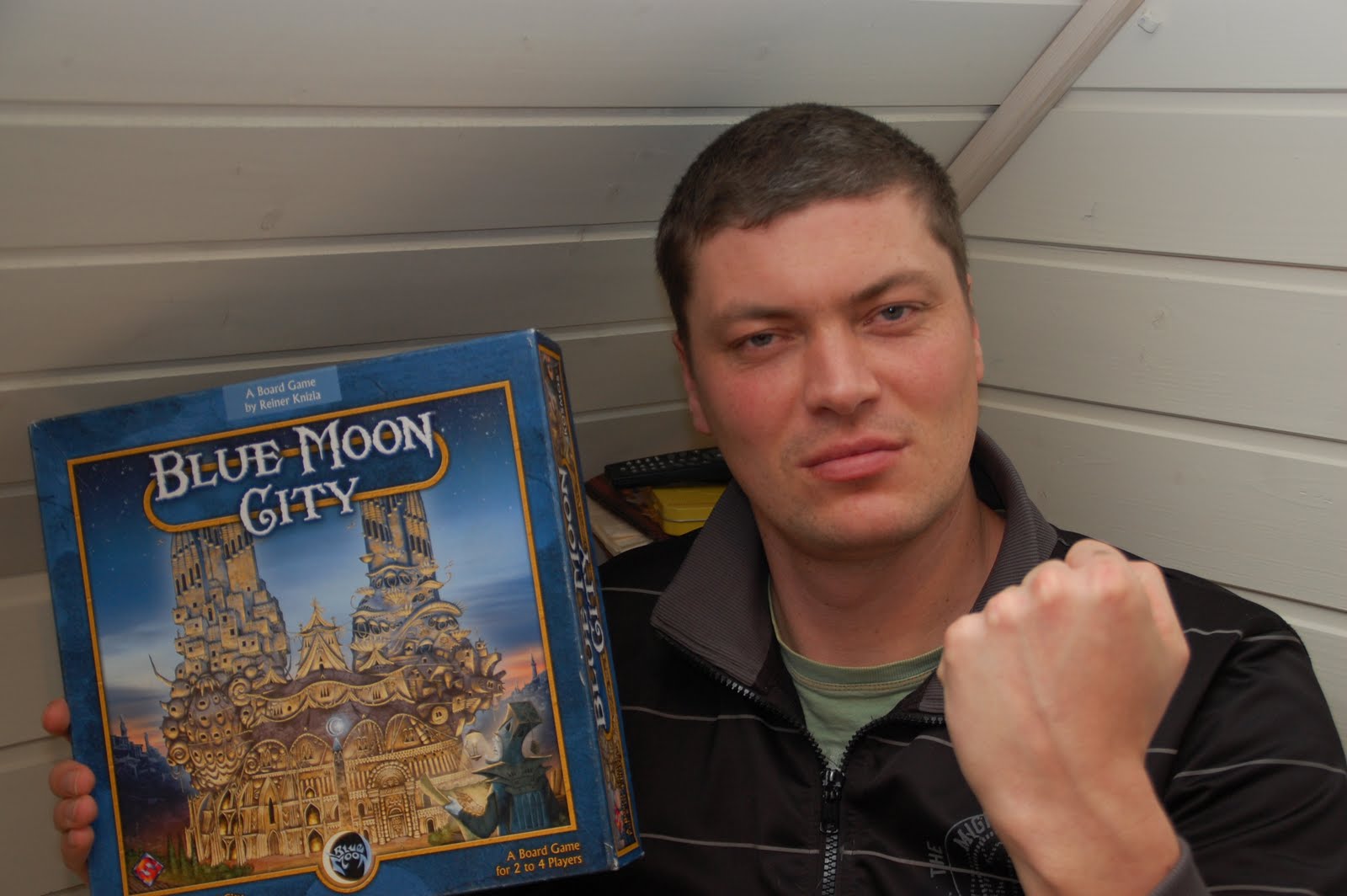 ret Garbage 08. Og en kjapp regelforklaring av selveste Black ant! så var vi i gang. I BMC gjelder det å få mest mulig ut av brikkene og kortene sine. Det skal bygges byer og gjøres offringer etterhvert som en har tjent nok diamanter til å gjennomføre disse. Diamanter kan tjenes på ulike måter, og det gjelder å optimalisere handlingene sine. Noen klarte dette meget bra, mens andre slet mer. Sven og Peter klarte på finurlig vis å tjene et lass med diamanter for hver by de byg