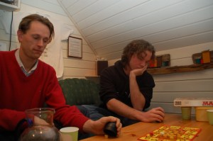 re og til slutt sto begge med en terning hver igjen, det ble ulidelig spennende, men Arild klarte å vinne, så da kommer han neste gang også:-)