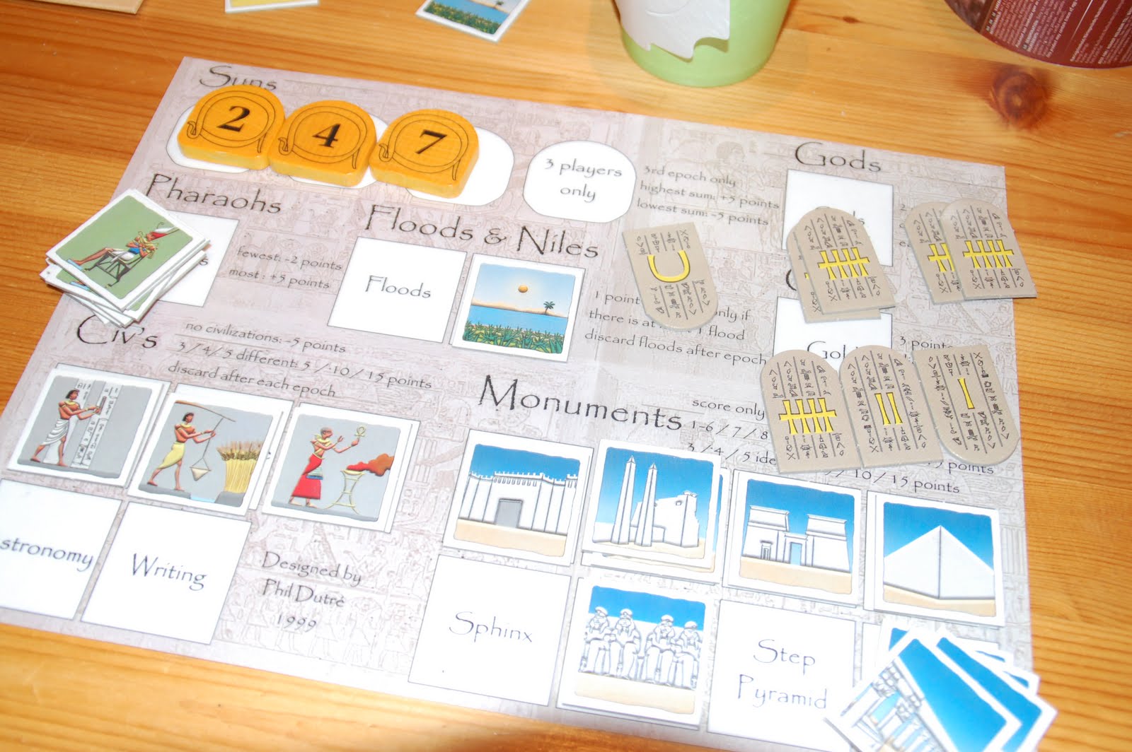 en vi var så godt igang tok vi likegodt en runde til. Hollender som hadde tjent godt å monumenter satset igjen på dette, og Black ant hev seg på. Sveinmain og Vegard kjørte på arbeidere, faraoer og vann, og etter 3 runder og telling så sto ikke monumentuttellingen etter innsatsen. Men kjapt gikk det unna i allefall, og moro var det.