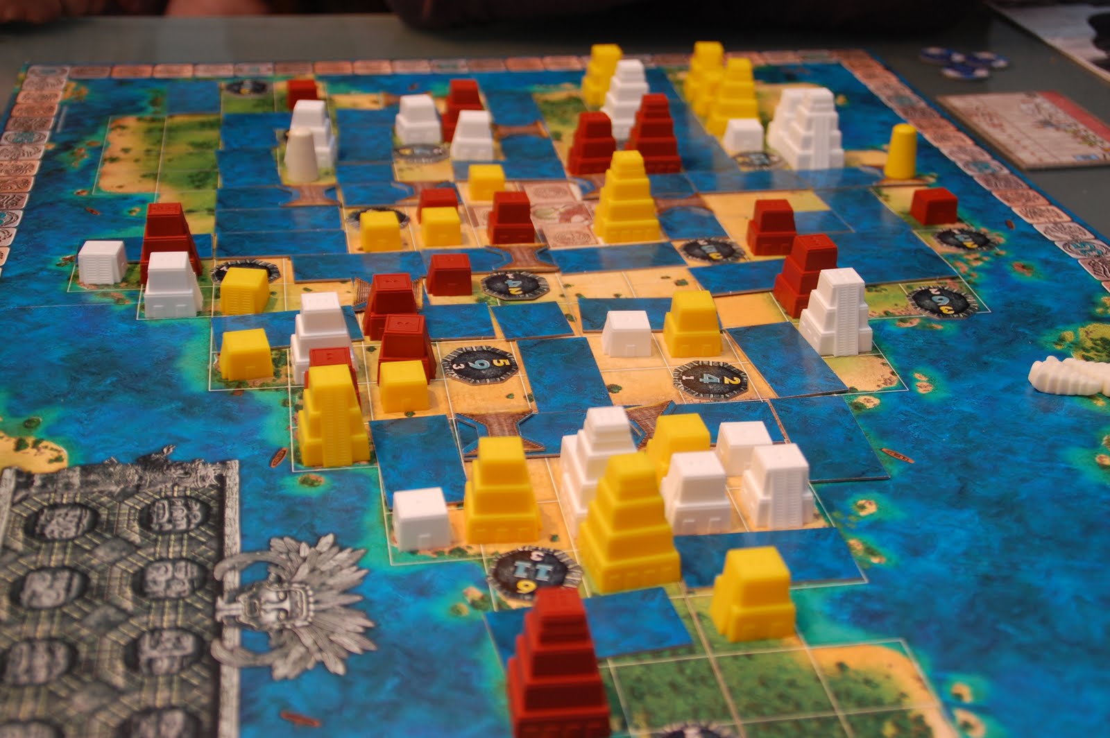 ne. I Mexica skal vi bygge opp byen Henandes Cortez ødela da han erobret Mexico på 1500tallet. Azekerne skulle bebo området med akvadukter og pyremidebygging, men først måtte byer grunnlegges. Peter startet spillet med å hoppe ned til innsjøen i spillet og grunnla en by der. Vi andre hoppet etter og dermed startet kampen om byene og poengene. Som vanlig 2 tellinger, men forunderlig var det denne gangen ingen Special final scoring som spillskaperen Kramer har i forgjengerne Tikal og Java. Morsom forflytning langs aquaduktene, da det var kostbart å flytte seg på land. Black ant og Peter hadde noen skikkelige innflytelseskamper i de store byene, mens Sveinmain satset heller på de litt min