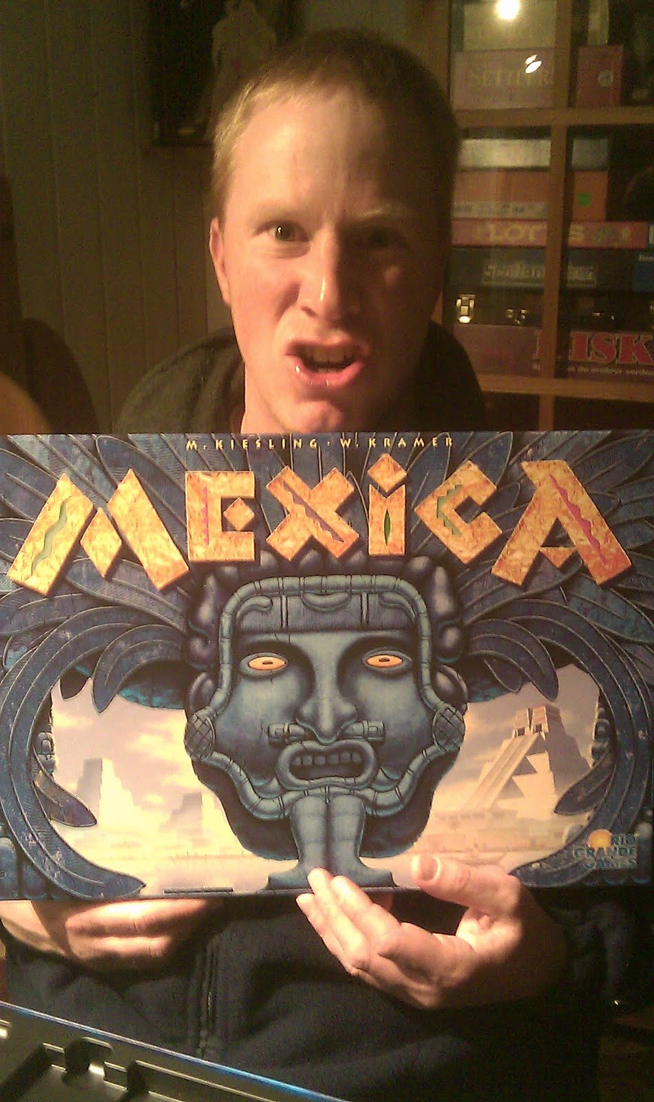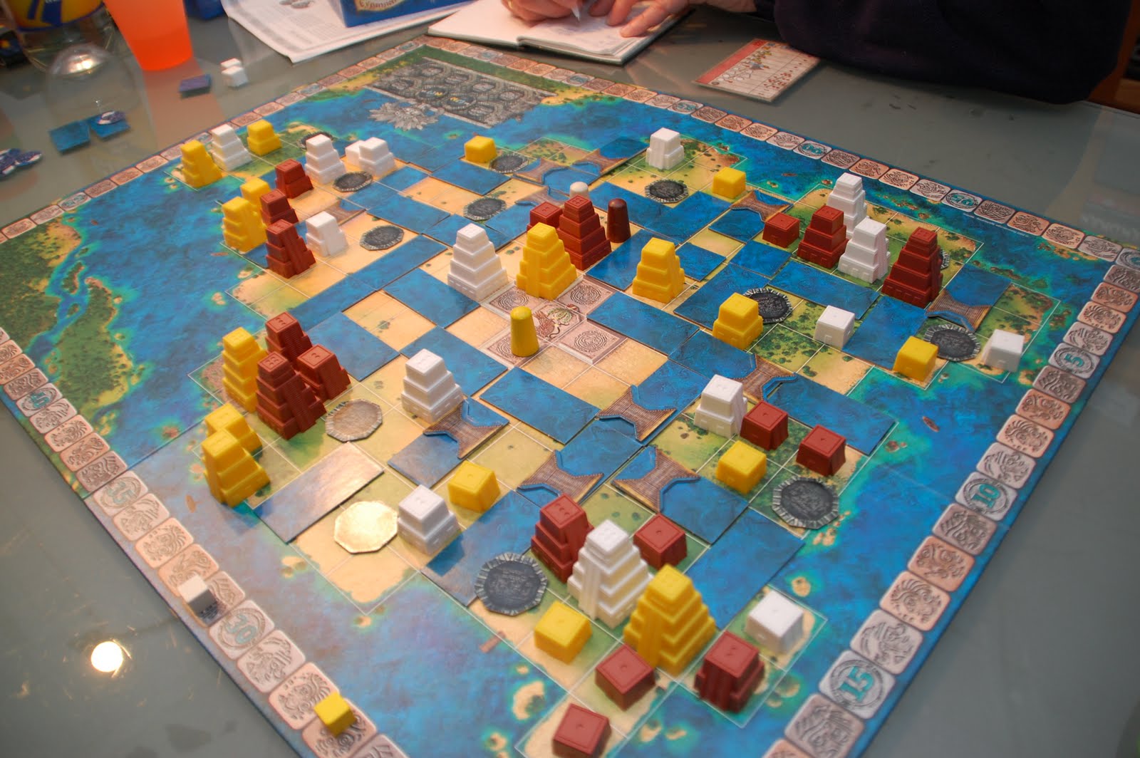 lack ant bygde det de kunne av pyramider. Peter scoret billige poeng, men hev seg også på pyramidebyggingen hvor det gjelder å få majoritet i de store byene, ra renner poengene inn. Lettere sagt enn gjort. Peter klarte på mirakuløst vis og avslutte første runde, og det ble telling. Når vi skulle starte 2. runde så fant vi ut av Peter hadde benyttet en pyramide forlite i 1. runde og Sveinmain kunne avslutte og hentet 10 viktige poeng på Peter som fortsatt ledet. 2 runde ble meget jevn og det ble kamp om området som det ikke kunne bygges by på, men som likevel ga poeng. Peter lå an til majoritet og 17 viktige poeng, men han plasserte den ene pyramiden sin slik at Sveinmain og Black ant klarte å lage en egen liten by rundt denne, og den telte dermed ikke med på majoritet. Dermed kunne Sveinmain ta nok en Mexica-seier. Også denne gangen med 131 poeng, men det ble mye jevnere enn sist, så det spørs hvor lenge han får sitte på tronen.