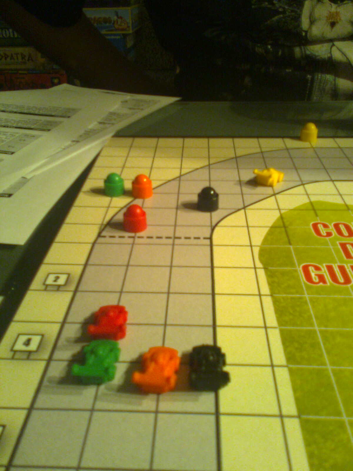 Alle hev seg frempå og det gikk ikke lenge før det var tomt. Da var det ikke annet å gjøre enn å ta fatt på kveldens hovedspill: Bolide. Sveinmain hadde knekt koden på dette racingspillet nesten uten terning. Ingen trenger terning for å forflytte seg, en følger reglene i spillet som gjør at en enten kan bremse inntil 2 flytt eller øke med inntil 2 flytt. Vanskelig å forklare, men Hollender og Black