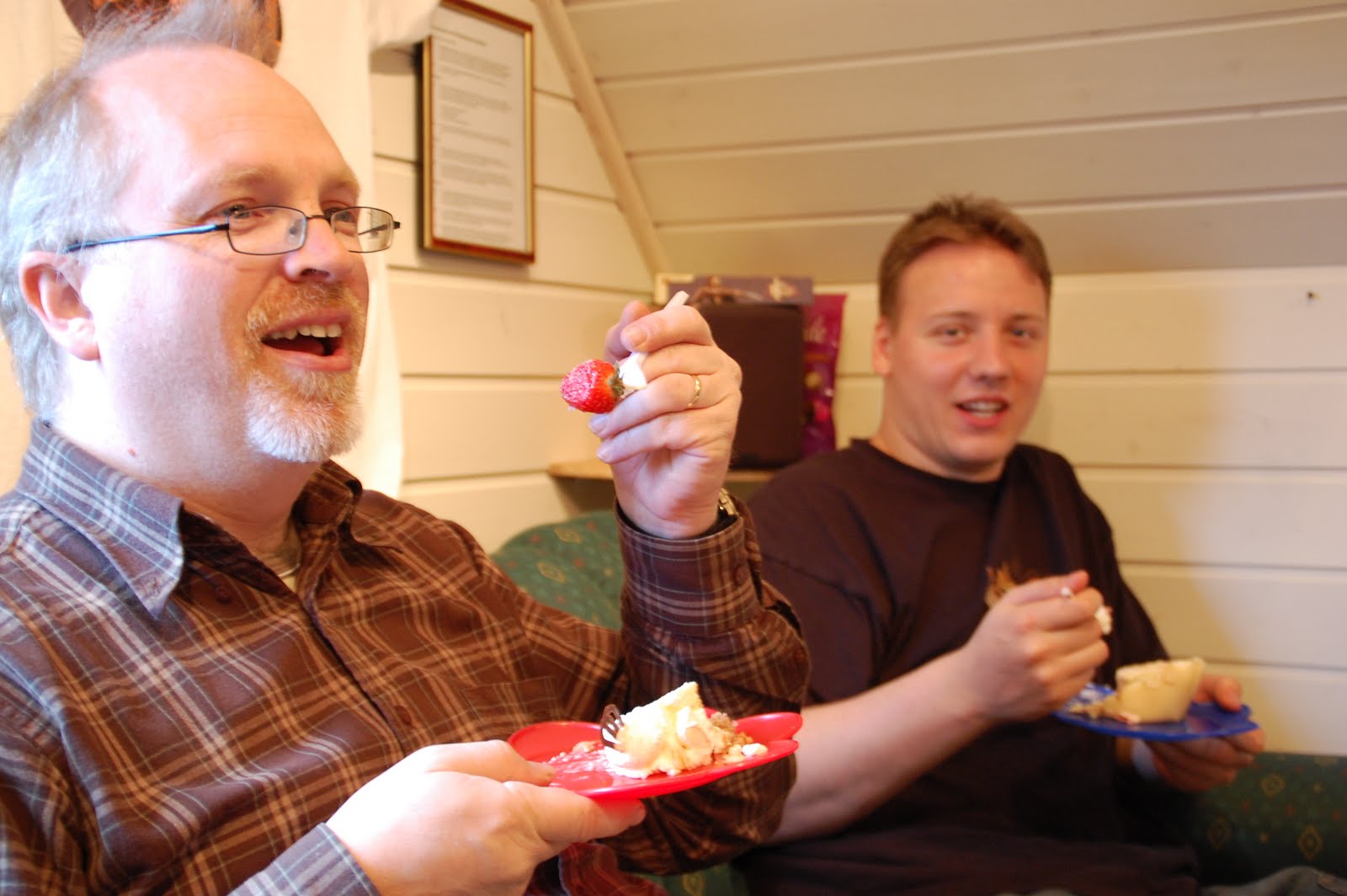 Black ant hadde håper på mange fremmøtte denne kvelden i PG, men det ble mer utopi enn virkelighet. Vi i PG har fortiden et stabilt lavt oppmøte, men likevel såpass stabilt at en kan spille de spillene en ønsker. Menyen står selvsagt av forrett, hovedrett og dessert. Men forretten ble denne gangen erstattet med ekte kake, og det var ikke utopi engang, men ekte deilig marsipankake. 4 kakespisere hadde funnet veien til spill-loftet. En god start på en herlig aften!!!