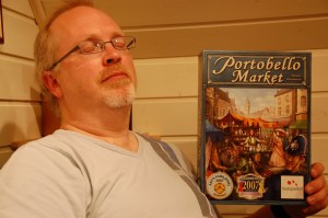 og for at alle skulle bli venner igjen tok vi en runde Portobello Market. Sveinmain forklarte reglene så var vi igang. Her gjaldt det å sette opp sine salgsboder og få de beste kundene til å komme til akkurat din gate. Bobbyen måtte selvsagt passe på ellers ble det dårlig med bygging. Det ble en jevn batalje hvor Peter valgte å avslutt