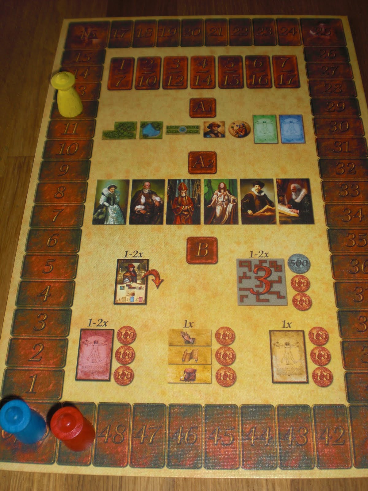 Siri og Hollender produserte ”verk” de første rundene, men Peter satset på byggmestere og samlet en del bygg som også gav ham poeng. I tillegg kjøpte han billig i auksjonsfasene, hvor andre brukte mer penger. Hollender tok en solid ledelse med 2 gode poengsankere (takket være 2 sjonglører) i runde 3, men hadde da også brukt opp karakterkortene sine. Siri passerte ham, mens Peter startet nå sine store produksjoner. Etter runde 5 hadde Peter tatt en luke, og hadde dessuten nok penger den siste runden. Hollender måtte bytte tre dyre poeng i penger for å kunne kjøpe en bygning. Siri var uheldig med nye karakterkort som ikke kom helt overens med natur, bygg og friheter hun hadde fra før. I tillegg var det lite å tjene på de blå kortene, fordi andre karakterkort var heller ikke så passende. Hollender prøvde å drive opp prisen for Peter den siste runde, men endte selv opp med en ubrukelig park. Et prestisjekort hadde gitt ham større utbytte. Siri hadde det største verket på 25 i runde 6, en mer enn Peter som gikk glipp av tre kostbare poeng. Hollender fikk 7 poeng for
