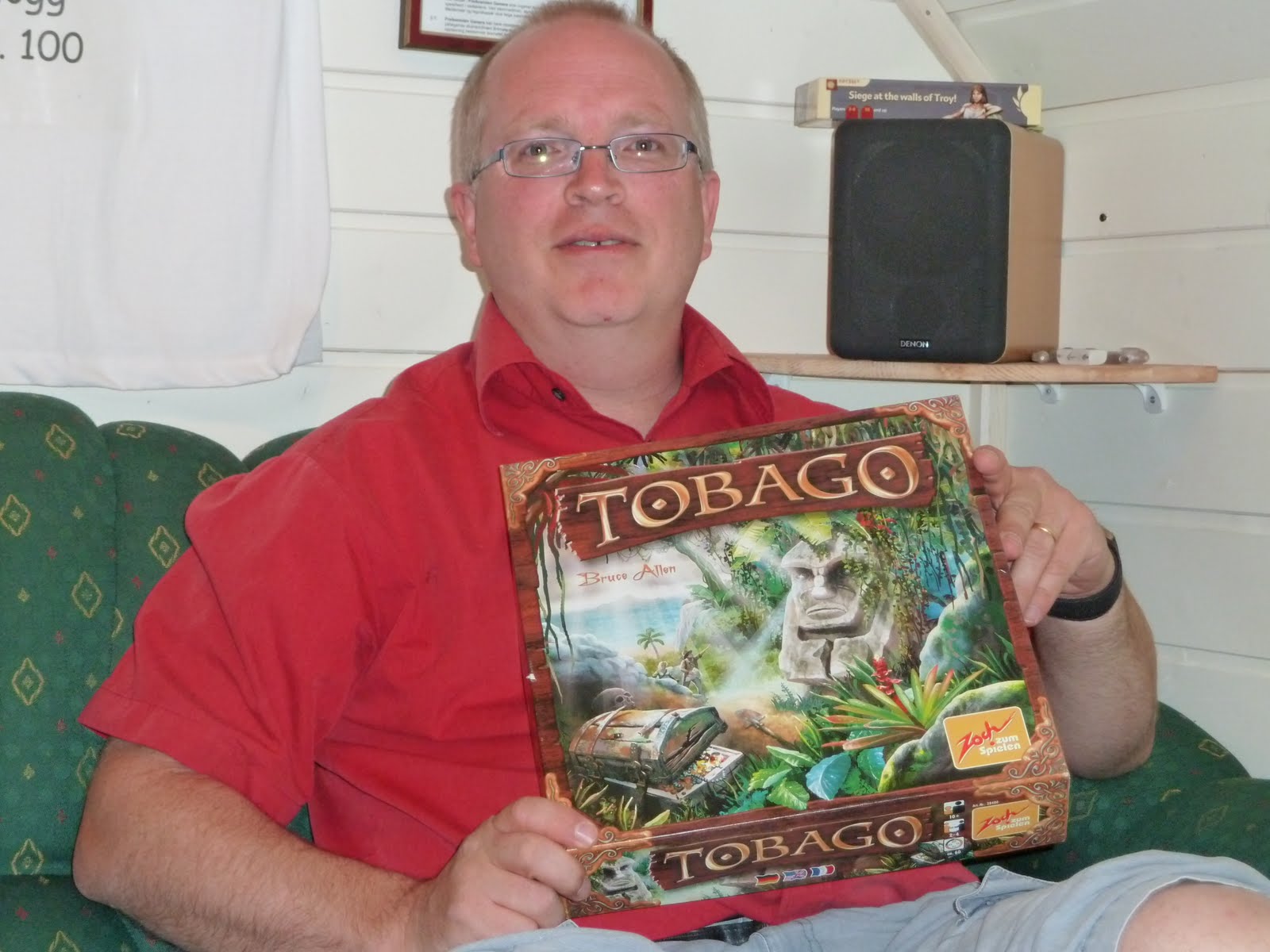 Nå ankom Vegard og hovedretten skulle avnytes. Valget føll på Tobago – et spill der en skal samle skatter gjennom at spille ut kort som trinnvis begrenser de felt der en av fire skatter kan være gjemt. Når kun en plassering av en skatt er mulig må den hentes ved å kjøre sin bil til stedet for skatten. Den som plukker opp en skatt får også en andel i skatten, som består av like mange skattkort som det finns andeler i skatten. Hver og en som har andel av skatten får se like mange skattkort som siden blandes av den som hentet skatten. Kortene kan ha to til seks gullpenger og i tillegg finns det to piratkort. Skattkortene vendes opp et og et. For hvert kort så har den som hentet skatten første opsjon, deretter den som lagt siste ledetråden helt ned til den som lagt første ledetråden. Når man i den rekken har akseptert et skattkort forsvinner opsjonsretten for den posisjonen.