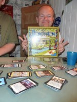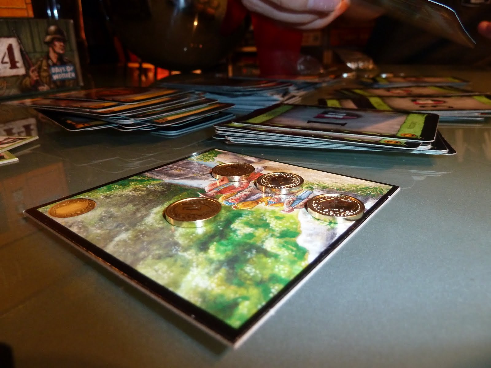 Så til Black ants høydare Prosperity! Denne gangen er det velstand i ditt kongerike(Dominion) og dermed flyter det over av penger og seierspoeng, men det gjør det hos naboen din også, og dermed må du være bedre enn han. Mange nye interssante kort og konstillasjoner. Og vakkert som alltid. Black ant har trent på Dominion hele sommeren, og fikk igang lokomotivet sitt denne gangen også. Kort som gir 2 handlinger, nytt kort som igjen gir 2 handlinger for igjen å cashe ut opp i hele 18 penger, noe vi andre sjelden var i nærheten av. Peter fant sent i spillet ut at enkelte handlingskort kunne spilles uten å bruke handling, og dermed fikk han en fordel, men den varte ikke lenge. Det ble en tett duell mellom han og Vegard, mens Sveinmain kom i bakleksa som vanlig i Dominion, men hva gjør vel det, spillet er utrolig kjekt likevel.