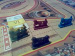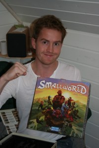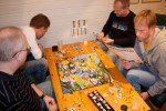 På det andre bordet hadde Peter, Dr.Proktor, Sveinmain og Black ant benket seg for en runde Smallworld. Black ant hadde sogar trent på dette spillet dagen før på Ipad, mens Peter hadde spilt det før. I Smallworld gjelder det å utnytte sin rase mest mulig. Til å begynne med er brettet lite bebodd, og det er billig å ta nytt land. Etterhvert har også de andre rasene flyttet inn på brettet og dermed blir det mye mer kniving. Rundene er genialt oppdelt. Ta mest mulig land, score for antall land ++ en kontrollerer. Slik går det til rasen din er såpass svak at den ikke kan utnyttes mer. Da er det bare å bytte rase. Men i denne bytte rase runden kan en ikke ta nytt land og en må da score på de landene en allerede okkuperer. Dermed gjelder det å bytte rase før en blir for svak og scorer dårlig i denne byttefasen. Sveinmain startet med noen Goblins som var få, men scoret mye. Det gjorde at han måtte bytte rase tidlig. Så gjorde også Dr. Proktor og Peter etterhvert. De hadde lagt seg på en 3 byttes strategi, mens Black ant som hadde indianerdama og kunne få 4 ekstra tropper i angrep hver runde satset på en 2 byttes strategi. Ant og Peter scoret godt på sine brikker, mens Sveinmain og Dr.Proktor slet i begynnelsen.