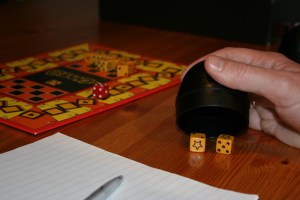 Mens Dr. Proktor gav seg mens han var på topp, tok vi andre likegodt noen runder Bluff. Første runde klarte Sveinmain å holde stand med sine 5 terninger ganske lenge, mens Peter og Black ant mistet terning etter terning. I Bluff må de enten se forrige bud, eller høyne, stemmer ikke antallet terninger med angitt valør mister du terninger. Til slutt satt Sveinmain igjen med 4 terninger mot Peters ene, og da gikk det som det måtte gå! 1. Sveinmain 2. Peter 3. Black ant