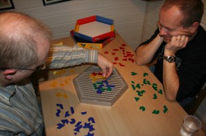 Delt sammenlagtleder i Name the Game, Innante hadde kommet og ble med neste spill som entret bordet; Samurai. Et innflytelsesspill i ekte Knizia-ånd, det vil si at poengtellingen alltid inneholder inklusjoner og eksklusjoner når det gjelder mest og minst. Når man får flertall i to kategorier (hjelm, rismark og buddah) vinner man. Men med fire spillere rundt bordet blir dette ikke så sansynlig.