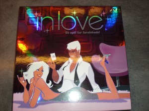 In love er et spill for forelskede står det i forførende stil på coveret. To flørtende personer med hver sitt kort kompletterer denne interessante framsiden. På siden av esken ser man raskt at dette er et spill for folk (les par) fra 16 år og oppover. Teksten utfordrer igjen: et spill med spørsmål og utfordringer mellom kjærester. Inne i boksen finner man er fløyelsbrett hvor man kan plassere de 270 kortene og i midten er det en praktisk rund plass hvor man kan trille terningen. I tillegg er det en magnetramme i spillets stil som man bruker til å henge vinnerens premie på kjøleskapet.