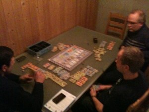 Da alle spillerne likte spillet tok en likegodt en runde til. Denne gangen satset Ant på masse penger, Saulius igjen bredt, mens Peter investerte tidlig i en dyr bygning som ga 6 poeng hver runde. Når en bare er 3 spillere blir det mange runder med mye uttelling og dermed mye uttelling. Derfor viste dette seg å være nok et smart trekk. Ant satset på flest mulige byråkrater, noe som kan gi uttelling i stor skala hvis en får mange ulike. Uheldigvis kom det i siste runde få slike utvidelser. Peter sørget for at spillet sluttet og til tross for en formidabel sluttspurt av Saulius og Ant var det nok en gang Peter som stakk av med seieren, ca 10 poeng foran Ant som var noen poeng foran Saulius denne gangen 🙂
