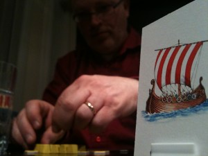 Da var det dags for kveldens første vikingspill! Dette skulle bli en vikingaften uten like, med både Grænaland og Vikings. Main hadde lyst til å prøve sitt velforberedte Grænaland aller først. Det er tydelig at han hadde brukt lang tid på å lese reglene og forstå dem. Og han gjorde en ypperlig jobb – som vanlig – med å forklare reglene. Reglene var mange, vilkårene for handlingene var enda fler. Brikkene settes ut avhengig av veldig mange faktorer som spiller inn, men det er etter hvert greit å få en oversikt over handlingene som er tilgjengelig.