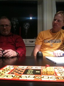 Hvem vant Bluff??? Alle selvsagt! Bluff er et unikum av et spill hvor alle på grunn av den fantastiske spill-opplevelsen avslutter som vinnere. Selv Saulius, som mistet alle terningene først nesten alle gangene, synes dette spillet er en fest! En har alltid to valg, enten høyne, eller se. Enkelt men likevel såpass nervepirrende når en kun har kontroll på hva max 5 av totalt 25 terninger viser. Meget avhengighetsskapende, og hadde det ikke vært for at klokken passerte 24 så hadde vi nok spilt ennå en runde. Men denne kvelden nøyde vi oss med 3!