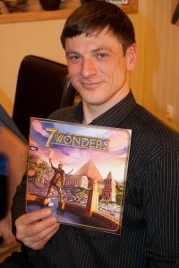 Er det en taktikk i dette spillet eller er det hele flaks. Det er Sveinmain som lurer på dette etter nok et nederlag i 7 wonders. Men hva gjør vel det, når spillet er en fryd å spille. Alle gjør en handling på likt, og alle har følelsen av å bygge og skape noe med kortene sine. Det er bare så forferdelig vanskelig å vinne. En er avhengig av naboene sine, men uansett hvem en har som nabo blir resultatet det samme. Men noen har iallefall skjønt med enn Sveinmain. Denne gangen ble det Saulius som hadde hodet på rette plassen med de gode naboene Hollender og Takras, og kunne smykke seg med tittelen 7 wonders-mester denne onsdagskvelden. 1.Saulius 57 2.Hollender/Takras 47 4.Peter 46 5.Main/Vegard 38 7.Pift 31