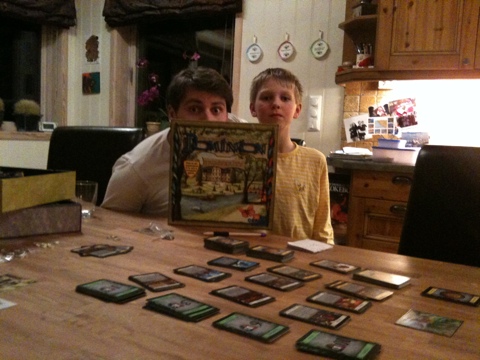 Mens vi ventet på den fordøyelige retten fant vi frem en forrett. Dominion og Prosperity-utvidelsen. Devaliant hadde spilt dette masse før, men ikke med utvidelsen. Som navnet tilsier er det mange kort her som omhandler penger og poeng. Det er rett og slett å bli rik. Oscar satset hele tiden på 6-erpoengkort, og før vi visste ordet av det var denne bunken gått tom. Det var mange som spilte ut kort som økte oddsen for å få poengkort på hånd i stedet for handlingskort og penger, og dette gjaldt kun for alle andre. Man ble ofte handlingslammet og måtte nøye seg med mindre kjøp og handlinger. Det var også veldig få kort som ga ekstra actions, så hver tur ble relativt kort.
