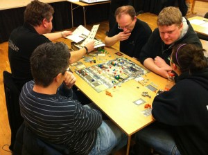 Klokken 10 måtte dørene være åpnet, og Takras hadde allerede satt på en kanne med kaffe – det viktigste under hele arrangementet. En gruppe fra HBK hadde dagen i forveien lagt ut og forberedt spillet Twilight Imperium, for dette er et spill som tar en god del timer å fullføre. Det var tre spillere som alle var kjent med spillet fra før, men likevel brukte de en hel klokketime før de gjorde første trekk. Det ser ut som et skikkelig spennende spill, men det er nok litt for hardcore for en generell PG-kveld. 5 timer senere var de ferdig, men selvsagt med noen avbrekk og andre brettspill underveis.