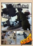 Denne gangen hadde Peter planen klar. Han brukte Takras’ mecha-tank til beskyttelse mot Takras’ egne folk, og brukte dette til full nytte. Neste runde fikk han aktivert flammekasteren sin, og den smeltet hele tanksen tilintet, og flyktet så avgårde i full fart. En god start for hans tropper. Takras ble fullstendig overrasket av dette og tok hevn mot Peters tropper på andre siden, og det ble en brakende… bom! Alle 10 terningene var fullstendig imot ham, og traff med bare 1 stk. Peter prøvde seg tilbake, men fikk de samme dårlige terningene. Styrkene ble tynnet ut på Peters side etter hvert, men så kom runde 4: forsterkninger! Peter fikk inn nye tropper hver runde heretter. Takras ville kun vinne dersom han hadde folk igjen i et visst område etter runde 8 var ferdig. Taktikken satt dypt, og både Peter og Takras flyttet seg rundt bordet, kikket på vinklene, kikket på kortene til hverandre og la planer. Det ble meget spennende etter hvert, og jubelen eller stønningen var stor da terningene var rullet og enten ga suksess eller ble mislykket.