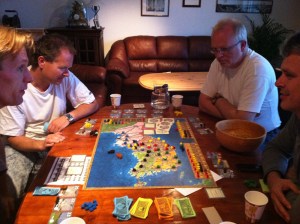 Det nærmer seg sommeren, men vi lar oss ikke stoppe av den grunn. Bare det er vindstille er det mulig å begi seg utendørs, selv med kort som ellers ville flagret bort i vinden. Men denne kvelden ble det innendørs i Black Ants deilig varme leilighet. Main kunne ikke ta turen, og da ble øynene store hos mange. Funkenschlag!