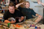 Så kom det et ekstra hyggelig besøk. Etter vi hadde spilt Caylus kom Knut Strømfors og hilste på meg, og vi satt en liten gjeng og disuterte godt og ondt om brettspill. Gøy å få hilse på en fyr jeg har hørt mye om, og vet at eier et forlag for brettspill. Det skal bli ekstra hyggeligere å treffe ham igjen på Spill-o-rama, da omgivelsene er lagt opp til mer spilling og mindre fokus på oppvarting fra arrangørene.