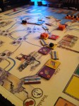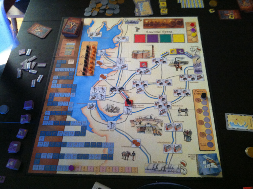 Spillet tok god tid, og kanalalderen var ikke over enda. Etterpå var det jernbanealderen, men vi bestemte oss før det ble siste runde for å bare avslutte etter første tidsepoke. Tiden etter er mye av det samme, men med litt mer råvarer og større plassmangel på brettet. Spillet imponerte, og må absolutt komme på bordet igjen, og i et utopi en gang uten at reglene må forklares på nytt. Marog som hadde spilt det før kunne helt uten problem hevde seg som seierherren, for det var liten motstand fra Vegard og Takras.