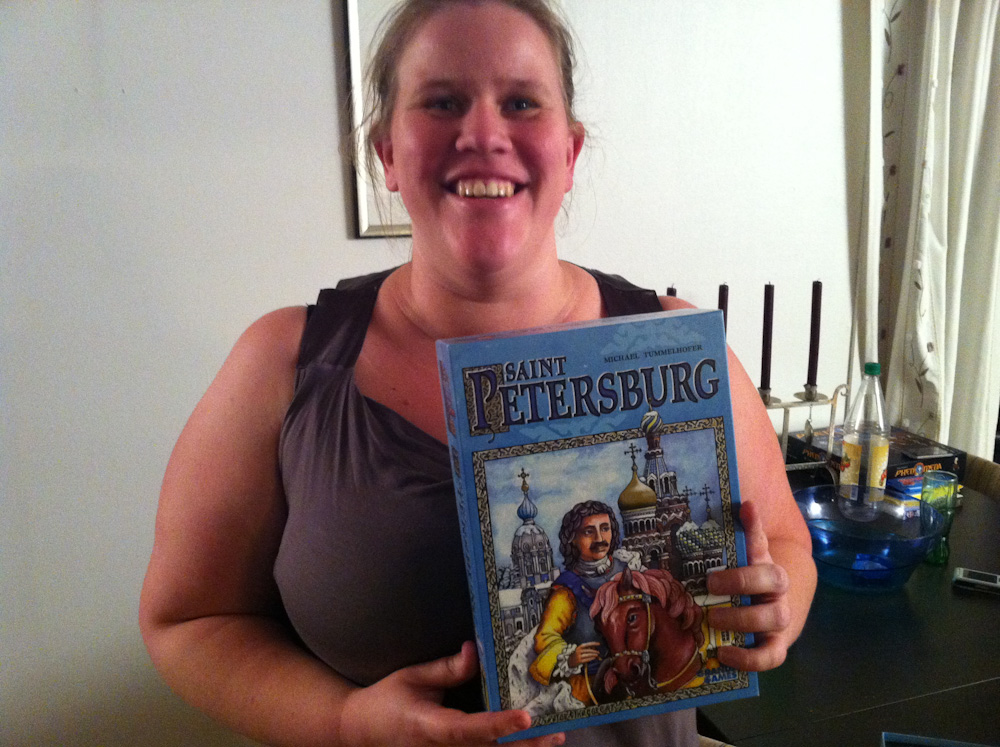 På det andre bordet ble det som nevnt St. Petersburg. Lillemor og Bjørg hadde ikke spilt det før, og dette har fort blitt et av Peters favoritter, så konkurransen for nybegynnerne skulle bli vesentlig. Kaoleena syns også dette er et flott spill, og har god trening fra nettspilling mot dyktige motstandere.